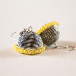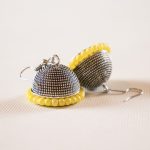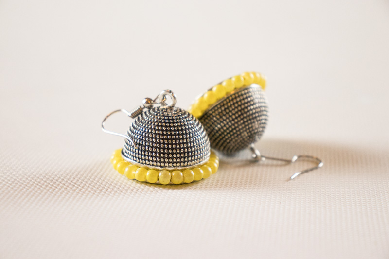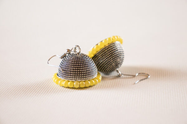Ezüstözött fülbevaló sárga üveggyöngy díszítéssel