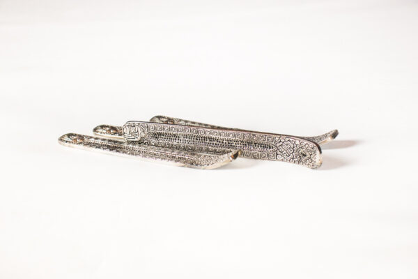 Fém füstölőtartó. Használata könnyű. A füstölőtartó felfogja az égő füstölő hamuját.