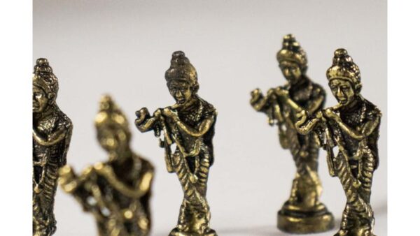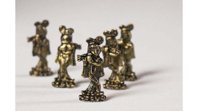 A Krisna szobrok fémből készültek, 4 vagy 5 cm magas. Súlyuk: kb 40 g.