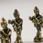 A hindu világszemléletben Krisna Isten eredeti formája. Fuvolával a kezében, pávatollal a hajában ábrázolják.