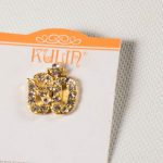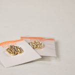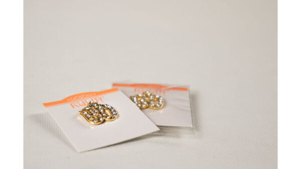 Szélessége: 16 mm, magassága: 16 mm, vastagsága: 1,5 mm, súlya: 5 g, anyaga: bizsu, kövekkel kirakva.